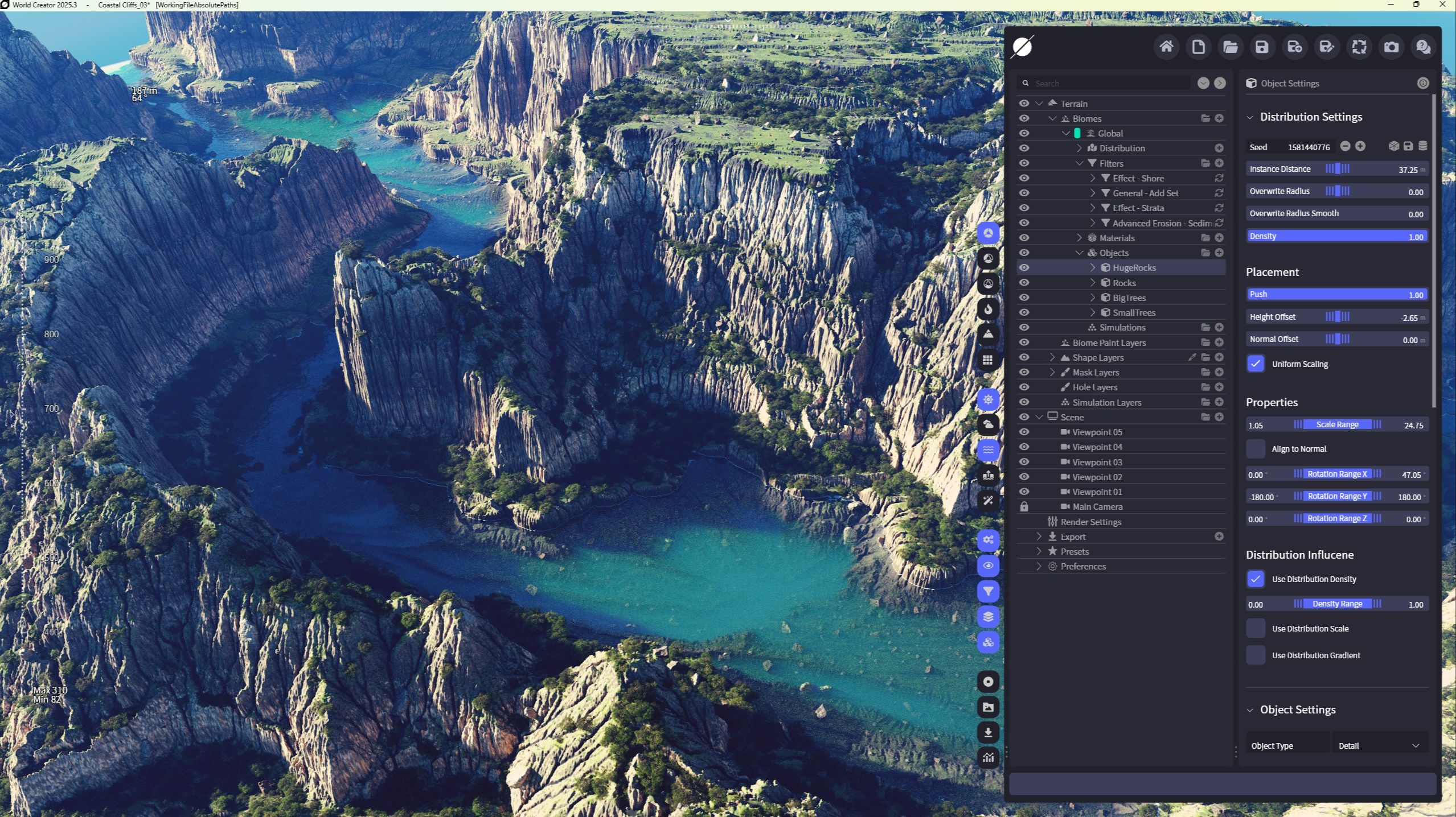 World Creatorâs Masking and Distribution system is incredibly powerful - and mastering it is one of the biggest steps toward creating believable, production-ready landscapes. In this course you will find chapters dedicated entirely to understanding how Masks can help with having great control over Materials, Filters and Objects distribution.